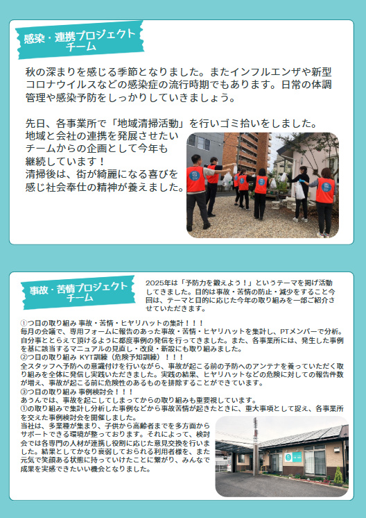 NEWS お知らせ 2025.11.28 あうん通信vol.161 あうんのホームページへアクセスして頂き、ありがとうございます。 新しくあうん通信が発行されました。どうぞ、ご確認ください。 今後とも、どうぞ宜しくお願いします。 PREV ALL NEXT ブログ BLOG デイサービスのアクションプランを決めきりました。 2026.01.13 事務局は、省力化・コストカットに動きます。 2026.01.12 デイサービスへご指導いただきました。 2026.01.11 お買い物レクが好調です。 2026.01.10 新たに介護業界にチャレンジされます。 2026.01.09 訪問看護は、これからの看護の花形みたいです。 2026.01.09 2040年に向けて、働くひとの層をもっと広げにかかることが必要です 2026.01.08 あうんは、週1回ミーティングします。 2026.01.08 あうんブログ お知らせ NEWS 2025.12.25 あうん通信vol.162 2025.11.28 あうん通信vol.161 2025.10.24 あうん通信vol.160 2025.09.26 あうん通信vol.159 お知らせ 採用情報 RECRUIT 滋賀の地域に住む人たちの暮らしを 一緒に支えていきませんか? 採用情報 Contact us お気軽にお問い合せください。 当社へのお問い合せはお問い合せフォームもしくはお電話で承っております。お気軽にお問い合せください。 お電話でのお問い合せ 077-516-6300 お問い合せフォーム